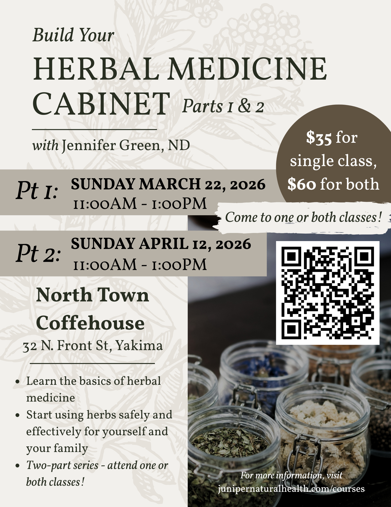 Join Dr. Green for a two-part series on the basics of herbal medicine so you can start using herbs safely and effectively for common complaints. You’ll have the opportunity to sample herbs and leave with handouts on the herbs and information we cover.